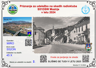 V letu 2024 je bilo na rednih skedih "Radiokluba Mozirje S51DSW" zabeleženih 775 zvez, zabeleženih je 78 različnih klicnih znakov iz S5.